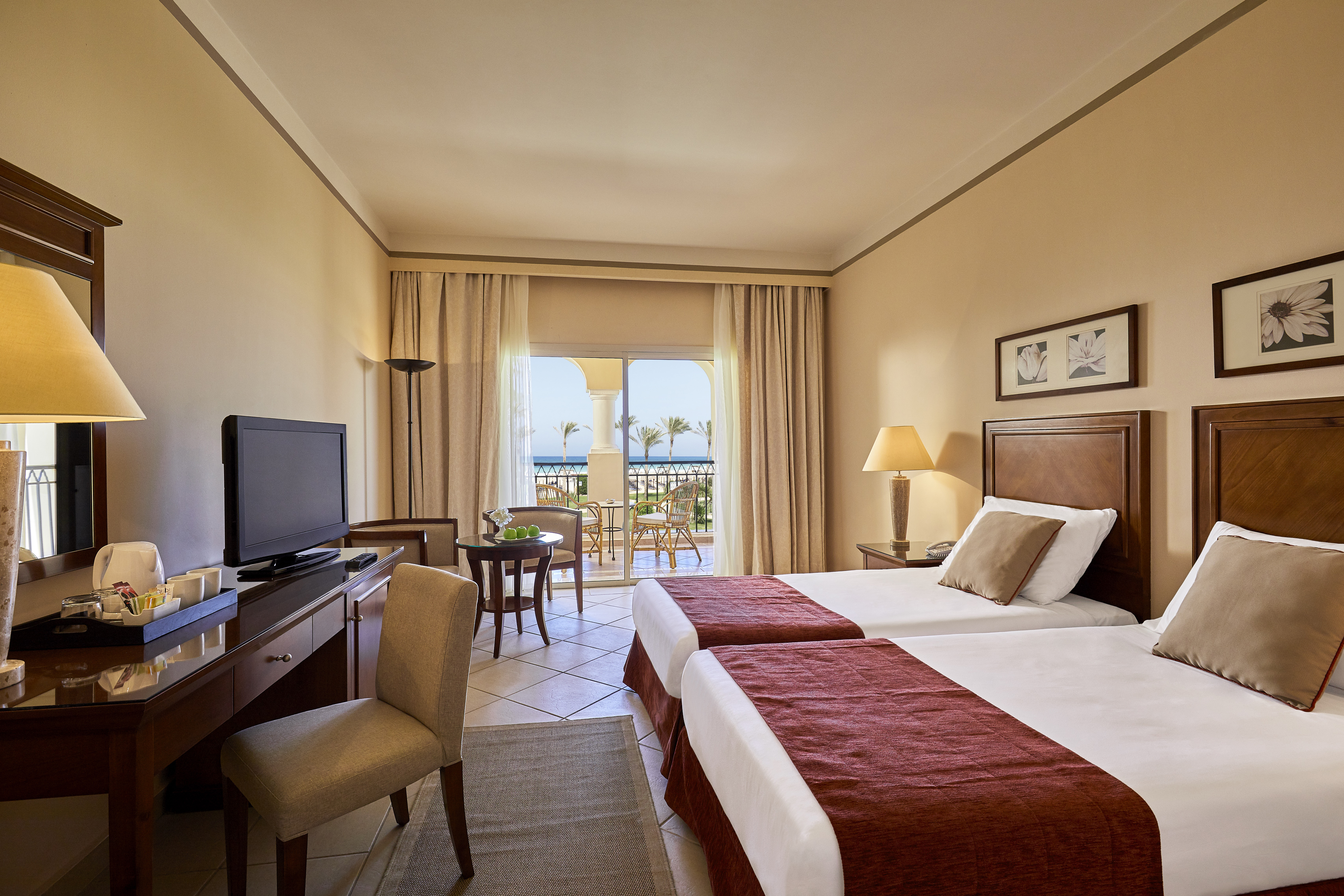 395 camere distribuite in tre blocchi su tre livelli. Suddivise in doppie Superior Vista Piscina o Mare; Family Room Vista Giardino, Piscina o Mare molto ampie, composte da due ambienti separati da una tenda, dotate di un letto matrimoniale (o due letti singoli) e da due divani letto fissi. Tutte le camere sono dotate di servizi privati con doccia e asciugacapelli, telefono, TV satellitare, cassetta di sicurezza, aria condizionata, balcone o terrazzino attrezzato con tavolo e sedie e minibar con consumazioni a pagamento.