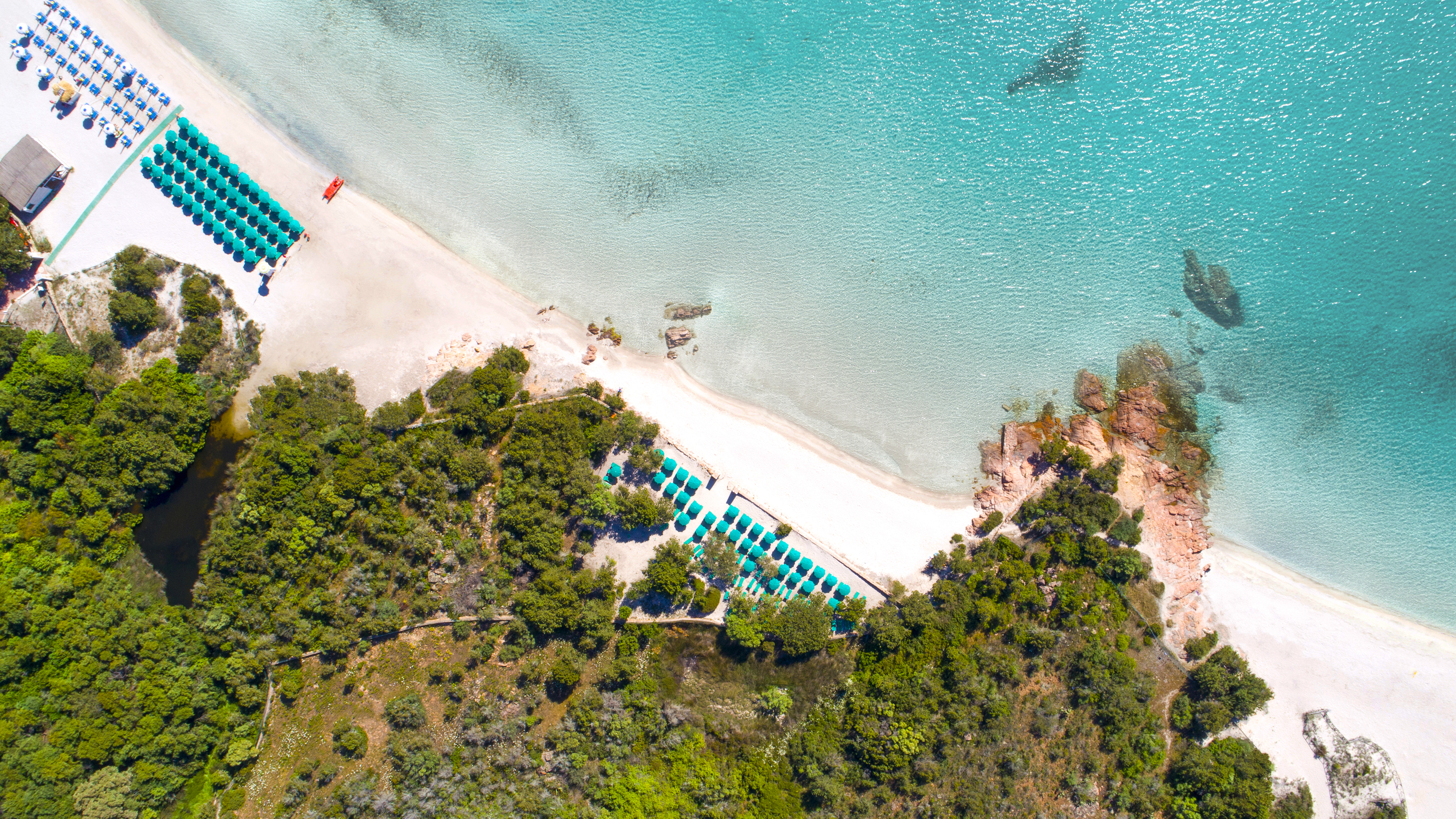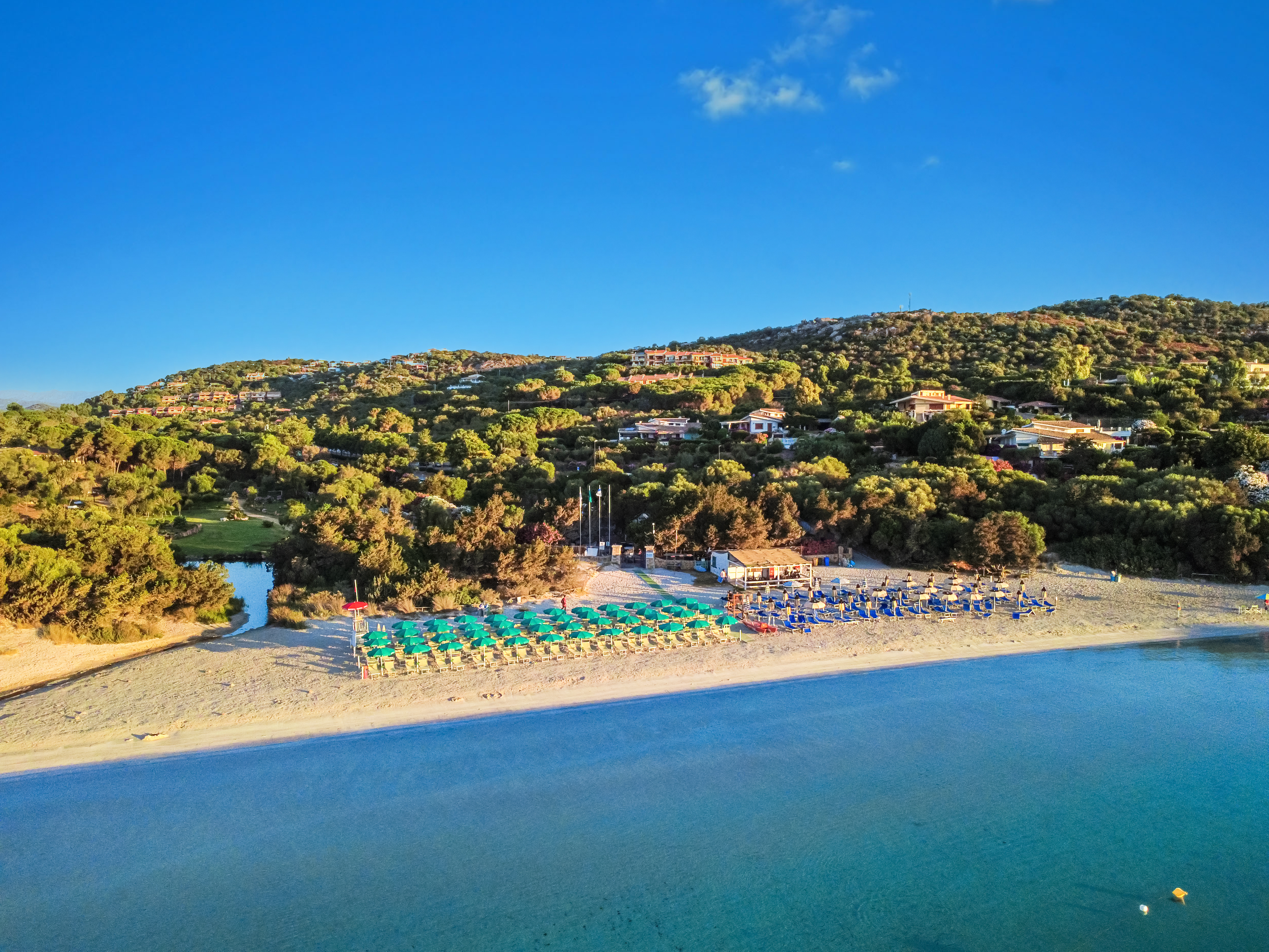 Spiaggia di sabbia bianca e fine raggiungibile percorrendo un piacevole percorso pedonale interno immerso nel verde che attraverso la macchia mediterranea giunge fino alla spiaggia. Questa presenta due aree attrezzate (distanti circa 150 metri l’una dall’altra) con ombrelloni e lettini a uso gratuito (dalla 3° fila) ed esclusivo degli ospiti; teli mare gratuiti. Ad ogni camera corrispondono 1 ombrellone e 2 lettini.